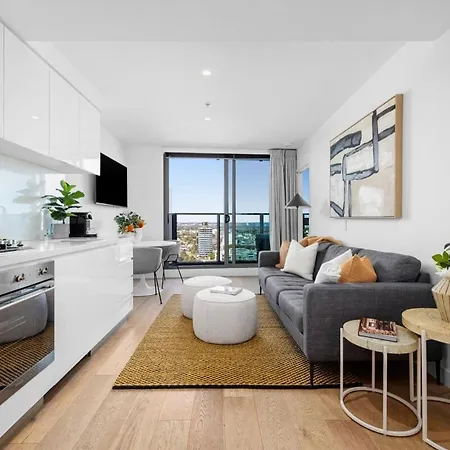 Chic Southbank Retreat Pool, Gym & City Views apartment offers a balcony and a fully equipped kitchen, as well as comforts like climate control. The property features a bathroom with a dryer and toiletries. Furthermore, a washing machine is available.